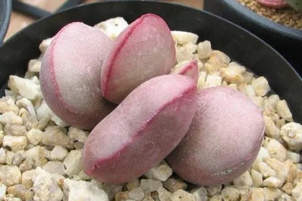 猪肝水泡的形状真的就像猪肝一样,而且叶片表面还有粉紫色的钻石纹路,属于水泡系列多肉中比较贵的一个品种了,近些年来随着杂交技术的成熟,猪肝水泡已经自成一个系列了,但是和猪肝有关的杂交品种就有几十种,常见的品种有哈莫猪肝、奶油猪肝、绿霜猪肝、假猪肝、花猪肝等,不同的品种颜色、颜值差异都很大,入手的时候可以综合自己的条件来入手。