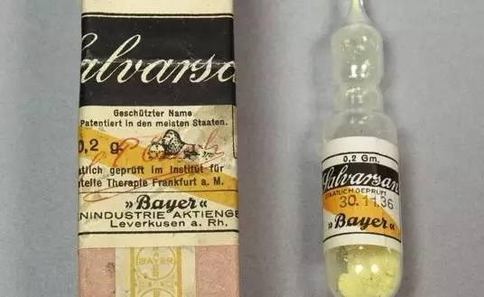 606,胂凡钠明,亦称“洒尔佛散”,图为1936年洒尔佛散样本。图片来源:Science History Institute