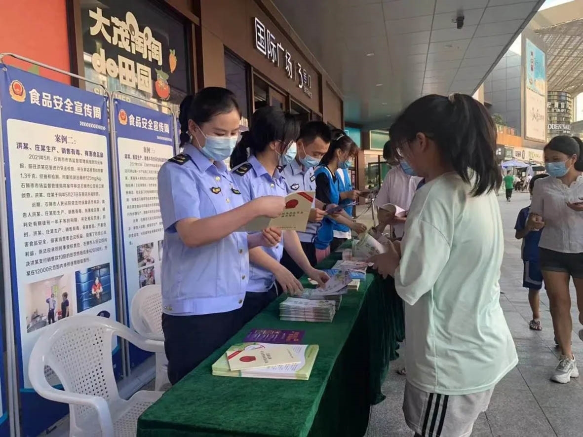 近日,记者获悉,全国公安机关夏季治安打击整治“百日行动”开展以来,石狮市公安局治安管理大队结合当前广大人民群众最关心、最直接、最现实的利益问题,保障人民群众的身体健康和生命安全,积极会同本地食安办及相关部门单位在石狮市世茂摩天城开展2022年度“食品安全宣传周”活动。