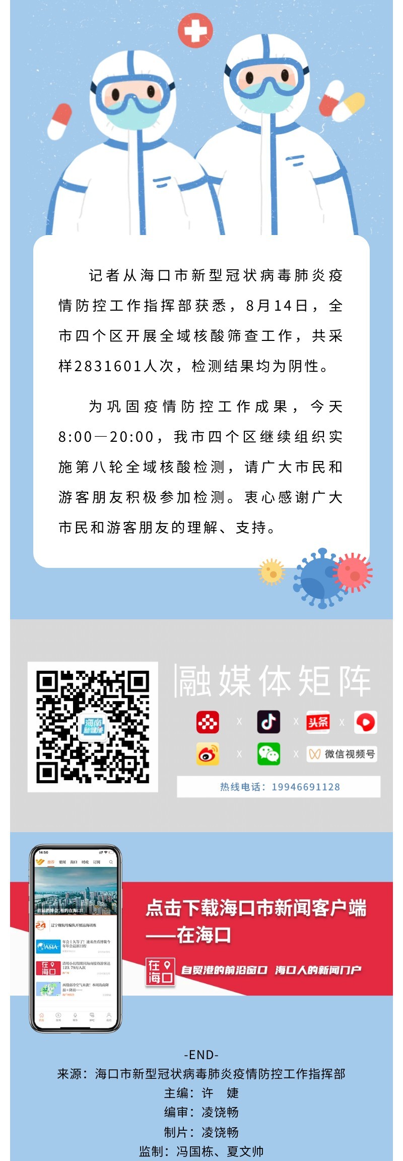 均为阴性!海口公布8月14日第七轮全域核酸检测结果