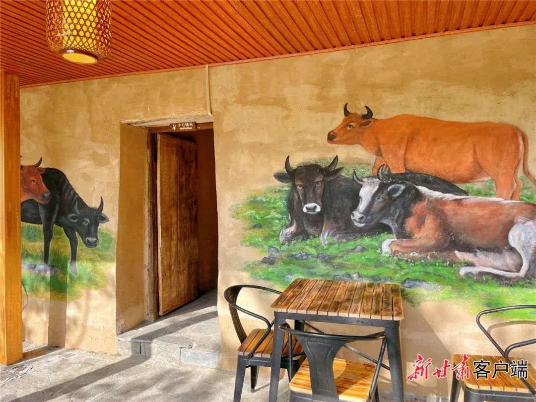 沿着九层青石板路拾级而上 ,土黄色的院墙装点着特色农具和精致彩绘,乡愁记忆瞬间涌上心头。在古色古香的“后院书屋”里,满目清雅幽静,书香气息扑面而来。一家由牛圈改造而成的“牛栏咖啡”,更是文艺范十足,成为人们经常前来“打卡”的文化栖息地。