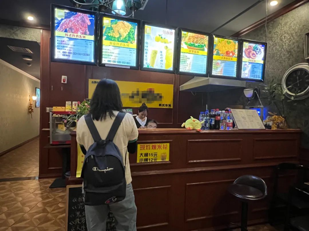 顾客在一家私人影院前台购票