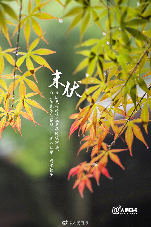 今年末伏为8月15日至24日,超长40天的三伏天就快过去了;末伏早晚较凉快,白天阳光依然强烈,且雨水较多;饮食应以滋阴清热、润燥健脾为主,可多吃百合、梨等食物;进入末伏,切忌猛吹空调、过度吃冷饮,应起居有节、适量运动,预防感冒。准备好和高温的夏天说再见了吗?