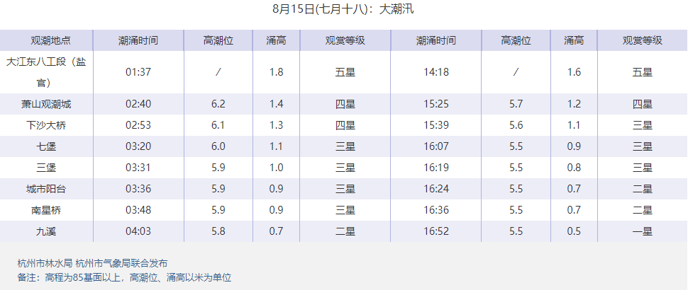 2022年钱塘江“鬼王潮”时间为8月15日(农历七月十八),最近这段时间潮水都比较大,适宜观潮。