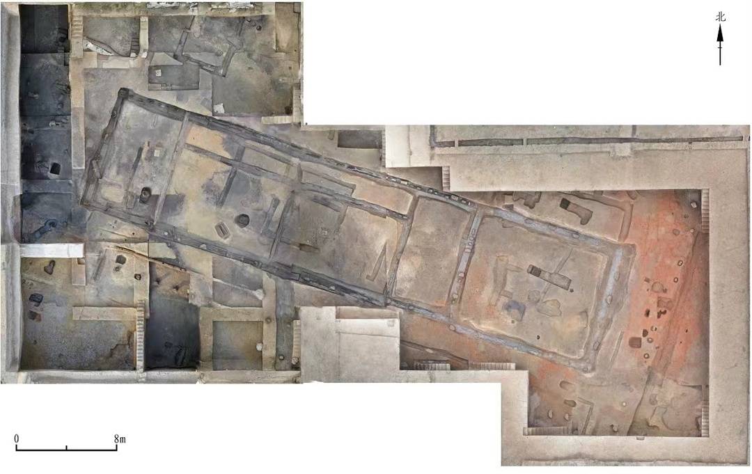 在范宪军看来,F63的现场发掘中最困难之处就在于此,这座大房子需要被一层层的揭开。F63所处的发掘区共50余个探方(把发掘区划分为若干相等的正方格,以方格为单位,分工发掘,这些正方格叫“探方”),F63上方堆积复杂,遗迹众多,发掘过程中还需要统一层位,进行编号,每个探方的情况不同,要保持同步发掘,还要及时记录、保护,是很有挑战性的工作。