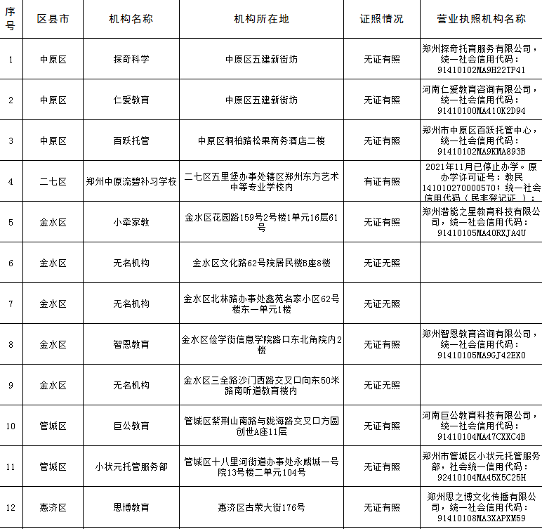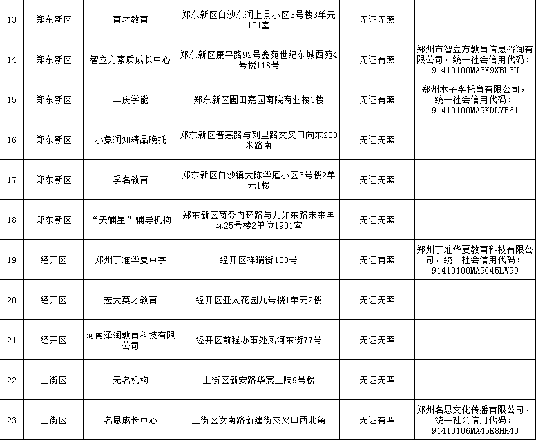 为切实减轻学生的校外培训负担,保障家长及学生的合法权益,郑州市教育局发布《郑州市校外培训机构黑名单》。请广大学生家长在选择校外培训机构时,认真核对机构相关信息,顺应孩子身心健康,审慎选择。