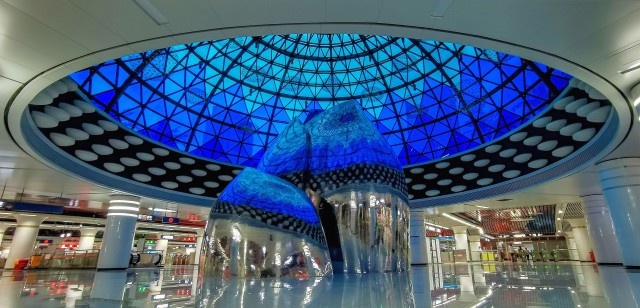 武汉地铁2号线王家墩站,建成之初,成为武汉市最美的地铁站,地铁站内部从地到天的天花板装饰都让人惊叹无比!城市摄影队@梦蝶