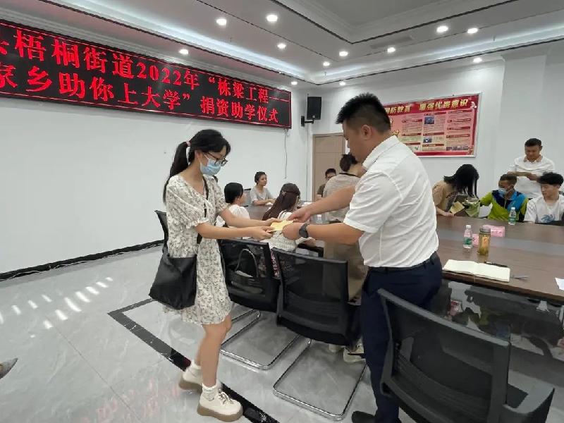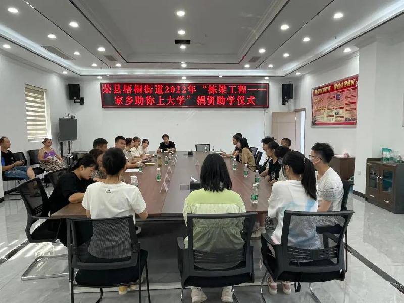8月11日上午,民盟荣县总支盟员、自贡市荣县顺达货物运输有限公司总经理闵锐参加荣县梧桐街道办事处举行的2022年"栋梁工程—家乡助你上大学"捐资助学仪式,向优秀的困难大学生捐款8000元。