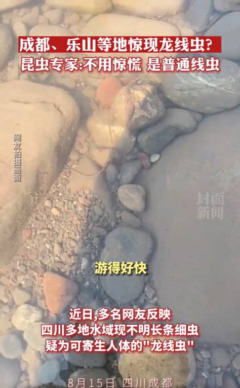 四川疾控专家根据网络发布的视频和照片,结合流行病学、生物学形态以及常规监测等,都不支持视频里的线虫是“龙线虫”,成都华希昆虫博物馆馆长赵力也表示,这些视频中的线虫并非“龙线虫”,而是昆虫体内寄生的某种线虫,进入了水体。