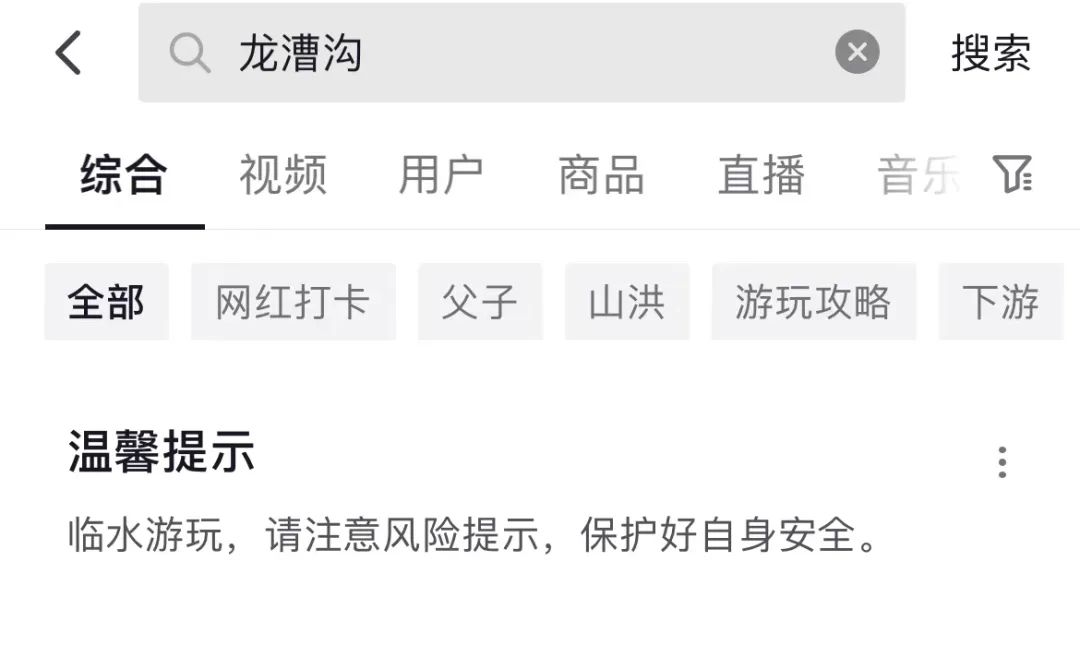 记者于8月14日晚检索“龙漕沟”发现,多社交平台已上线相关警示提醒——