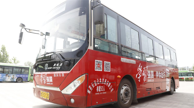 8月4日上午10点,莱芜区首批“学习强国”主题公交线路开通运行仪式在济南莱芜公共交通集团有限公司举行,8辆主题公交车装扮一新、精彩亮相。主题公交车车体以红色为主色调,配以醒目的“梦想从学习开始 事业从实践起步”等宣传标语,视觉效果显著;车厢内壁、拉环、护栏看板、座椅靠背等位置张贴着“学习强国”主题海报和二维码,方便乘客下载注册“学习强国”;车载电视还循环播放“学习强国”及“强国TV”宣传视频。