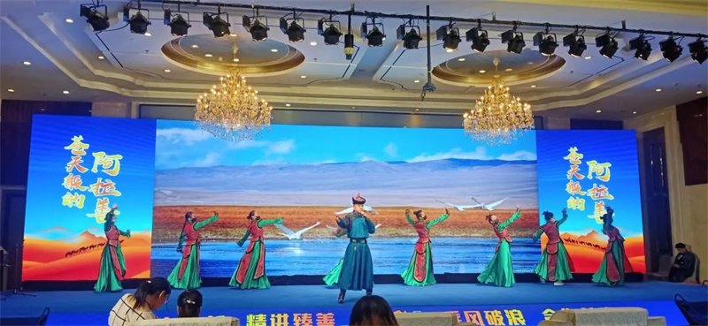 8月15日,阿拉善专场推介活动在悠扬的马头琴演奏中拉开帷幕,文化旅游专题推介、农牧专题推介、文创产品暨特色农畜产品推广、旅游企业座谈签约……无不向与会嘉宾展现出阿拉善的独特魅力。额济纳旗旗委书记王利军做全旗资源主题推介,额济纳悠久的历史、灿烂的文化、亮丽的风景、深厚的人文景观、浓郁的民俗风情等特色资源亮相这一国际化平台……让与会嘉宾领略额济纳的大气磅礴、荡气回肠之美;风光旖旎、绚丽多彩之美;物华天宝、资源富集之美;爱国奉献、气壮山河之美;开放创新、奋进发展之美,为本次推介活动增添了一抹夺目的光彩,最终赢得现场阵阵掌声。通过参加本次活动,使得额济纳胡杨、航天、口岸、居延等特色旅游名片得到充分展示与宣传。会后,阿拉善盟与各企业签订招商引资合作协议,进行“阿拉善盟驻西安招商办事处”揭牌仪式,现场气氛热烈。