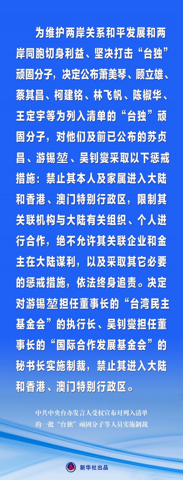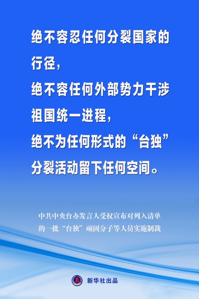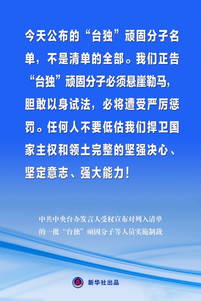 海报丨中共中央台办发言人受权宣布对列入清单的一批“台独”顽固分子等人员实施制裁