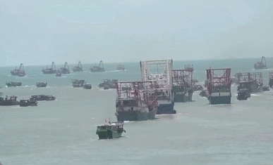 8月16日12时,渔船有序出海。直播截图