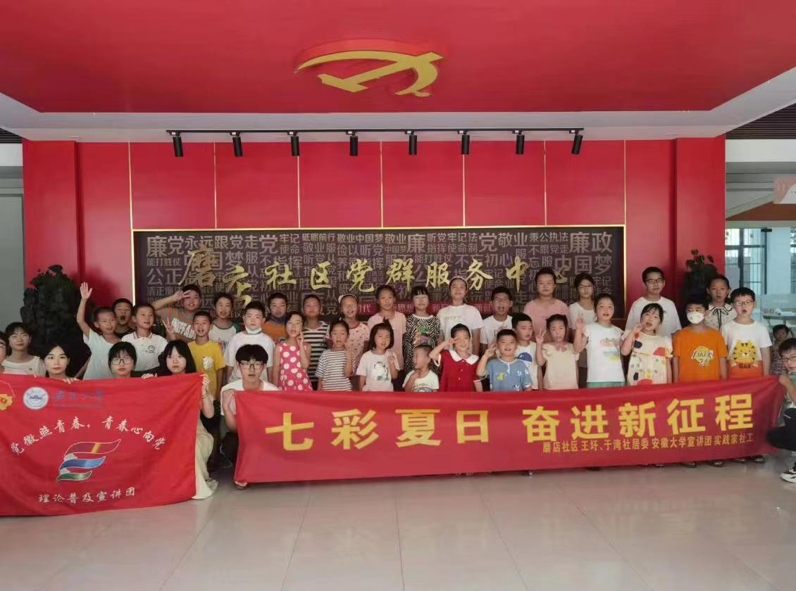为引领青少年感受党的百年光辉历程,传承红色文化基因,延续红色革命精神,培养青少年爱党、爱国情感,树立听党话、跟党走的坚定信念,激励广大青少年努力成长为担当民族复兴大任的时代新人。磨店社区、王圩、于湾社居委联合实践家社会发展服务中心及安徽大学宣讲团于8月14日共同开展“七彩夏日 奋进新征程”为主题的系列活动。