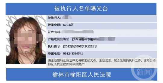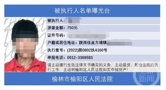 8月13日,陕西榆林市榆阳区人民法院“榆阳执行”发布的被执行人名单曝光台(第一期)引发关注。其中,一生于97年的女子因涉案金额750元被曝光。