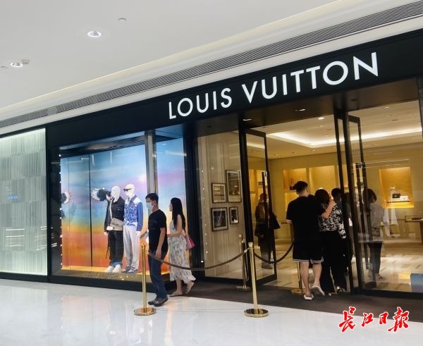 8月8日上午,武商MALL·国广的国际名品热度不减。LV、Gucci门口人一多,就要“拉线”限流。