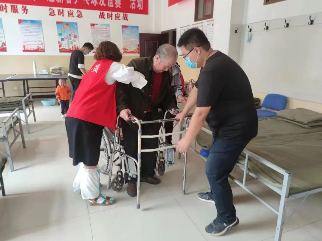 在安置点忙碌的身影中,像这样身穿红马甲的志愿者还有许多,有的在打扫卫生,有的在分发物资,还有的在陪老人聊天,他们忙碌的身影是安置点里一道别样的风景线。