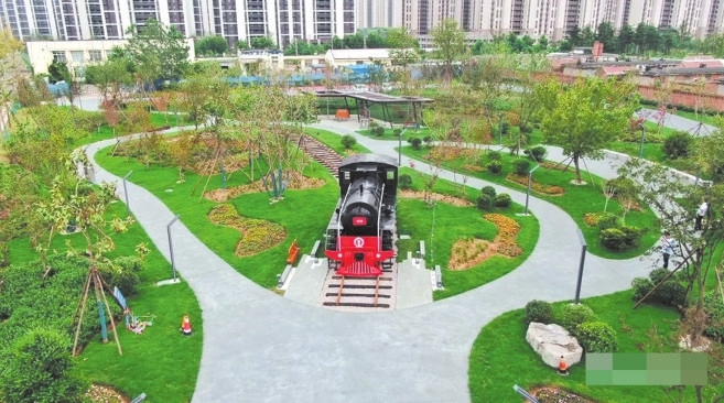 东港区城市管理和综合行政执法局相关负责人介绍说:“这里增添了火车头、铁轨、站台等记忆元素,建成日照市第一个铁民共建公园,变身‘城市绿色纽带,记忆生态长廊’。”