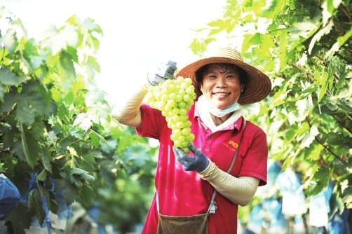 8月13日,日照经开区奎山街道盘石庄村葡萄园,一片整齐划一的种植大棚有序分布,一串串沉甸甸的葡萄挂满枝头,空气中弥漫着诱人的果香,不禁让人“萄”醉。