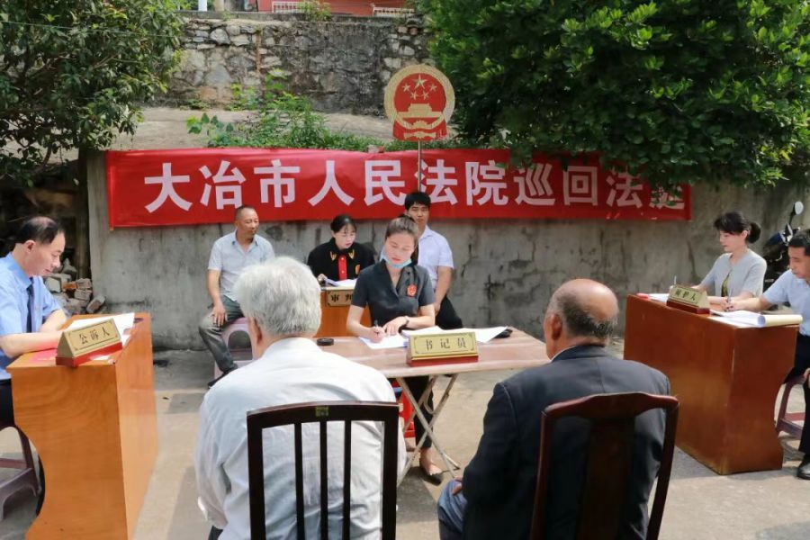 今年来,大冶法院提出发扬“全国先进工作者”“全国法院模范”吴远瑞的“山区挎包办案”精神,推进“一村一案”和“通村法官”,“挎包法庭”向大冶494个村挺进。