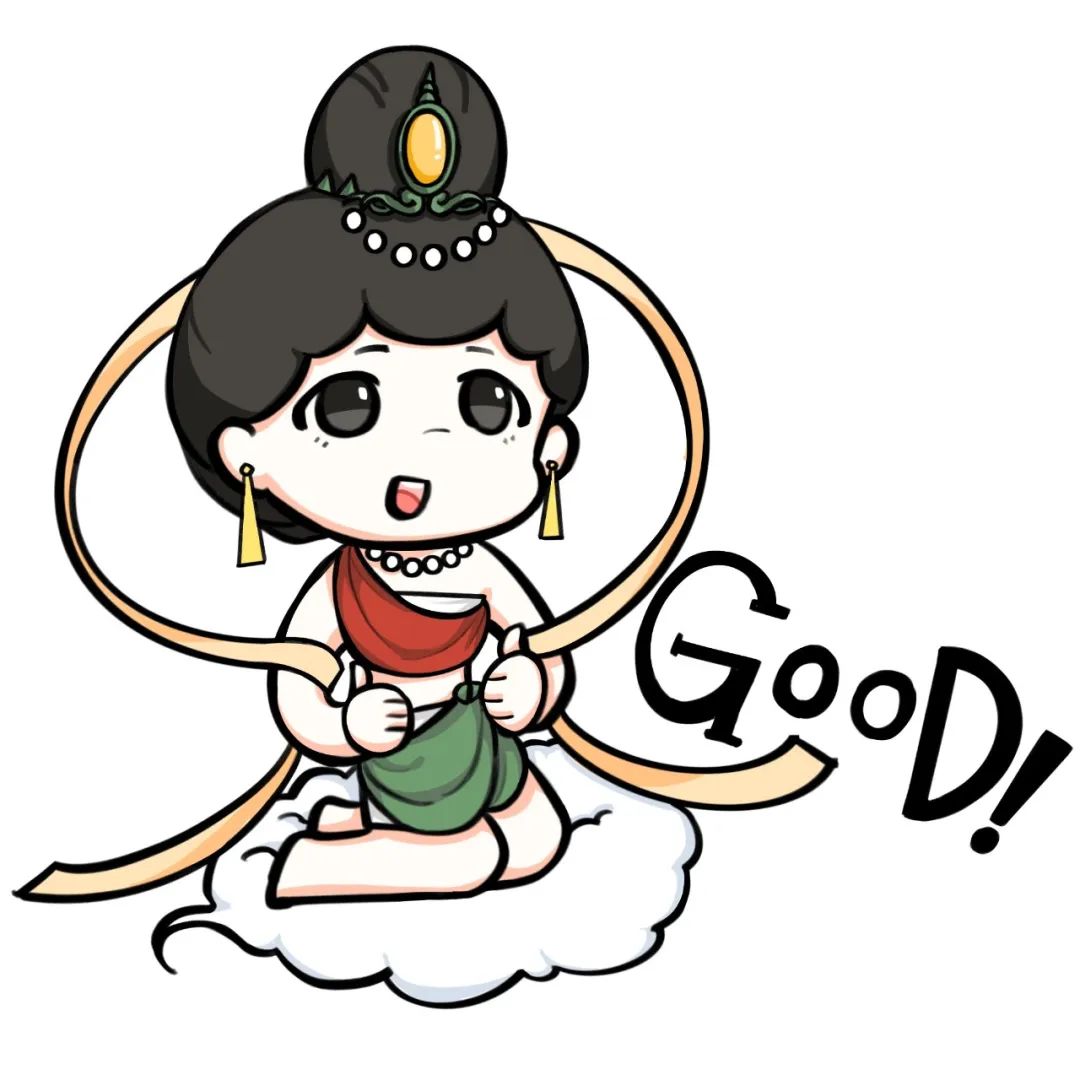 一个个憨态可掬的飞天形象就这样出现在面前,彰显着自己的小情绪:喜悦、疑惑、难过、感叹....飞天她鲜活生动的形象被做成表情包,这让敦煌的文化元素完美融入生活。