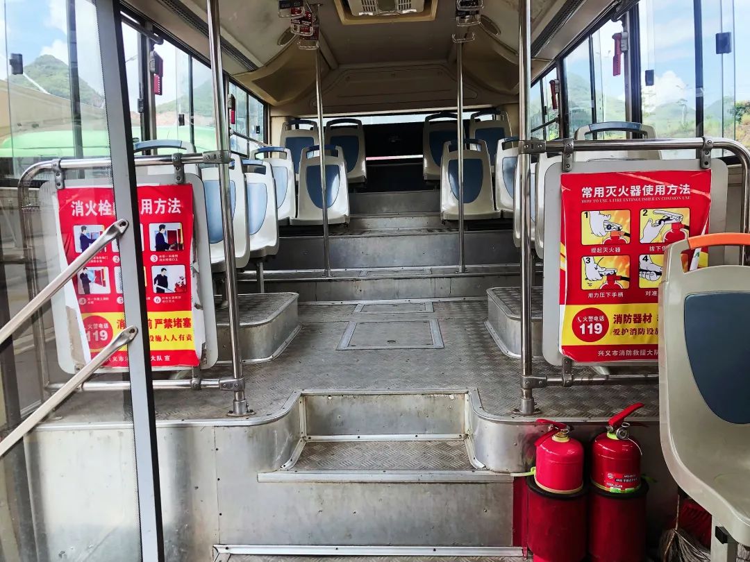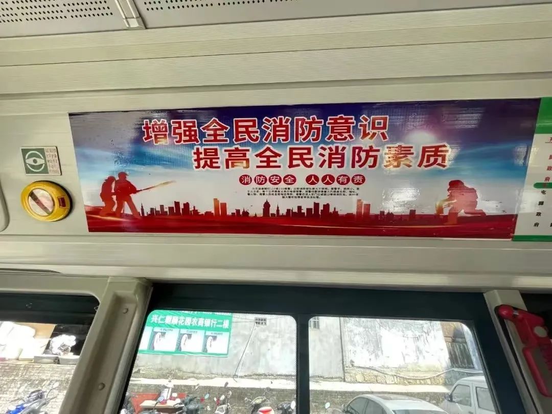 作为公交车站台,让群众在候车时可以学习消防安全常识;公交车和乡镇客车内的拉手及驾驶员后背广告及车顶上消防宣传广告,又让坐在车上的群众抬头就可以学习消防安全知识;而公交车车身上的消防宣传广告,则成为贯穿兴义市城乡社区广场学校工厂企事业单位的流动消防宣传平台。