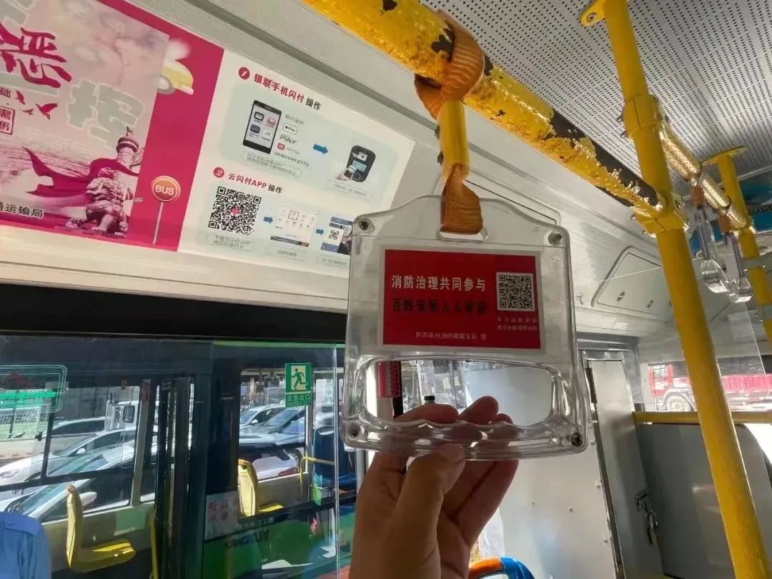 为进一步加强消防宣传,发挥城市出租车、公交车流动宣传社会效果,同时依托公交车站台强化消防宣传,黔西南州兴义市消防救援大队加强与公交公司联系,将市内城市公交、乡镇客车、出租车等800多辆车及20多个公交车站台打造成流动和固定消防宣传站,被群众称为兴义市的流动“消防宣传大使”。