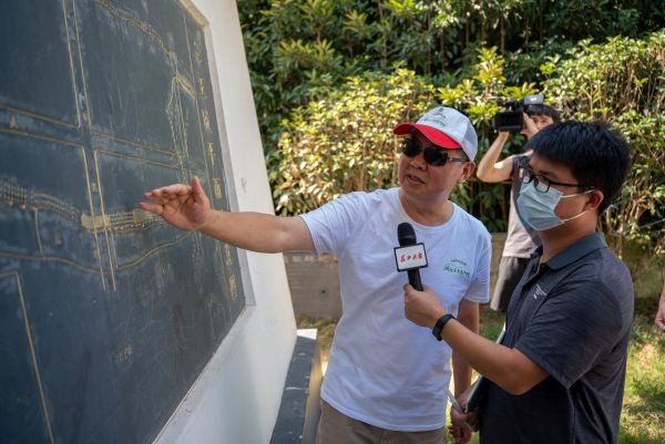 陈树祥教授向探访团讲解吴王城遗址。 通讯员熊松 摄