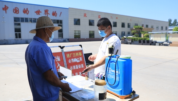 山东茂盛木业有限公司作为庄寨镇最大的刨花板生产企业,一大早工人们就在厂门口等待做核酸检测、测体温、扫场所码,这一套流程已经成为企业的“新常态”,而厂区里则是机器轰鸣,人员专注的操作机器,一片忙碌景象。