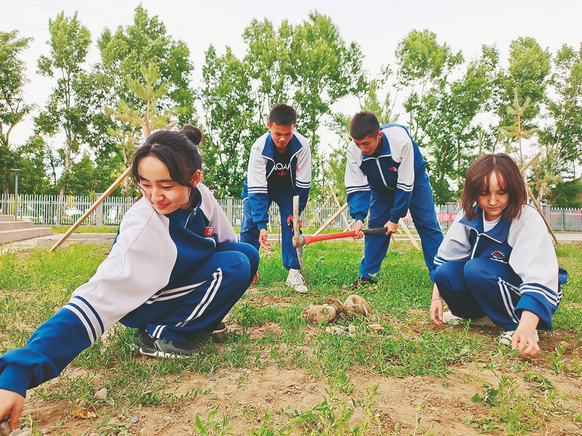 “我们学校地处戈壁,结合内陆乡村学校实际,校内设有蔬菜园、花园、果园‘三园’劳动教育实践基地,我们利用‘课后服务’和‘社团活动’时间,开设了劳动特色课程,显著提升了学生综合素质。”喀尔交镇牧业寄宿学校党支部书记刘军莉表示。