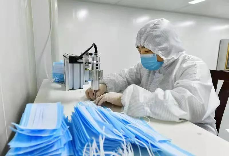 图为安阳市级残疾人辅助性就业机构——安钢附企福利公司的残疾人职工在加班加点生产口罩,为抗疫贡献力量