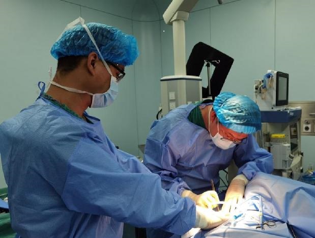 手术中的李记天(右)。