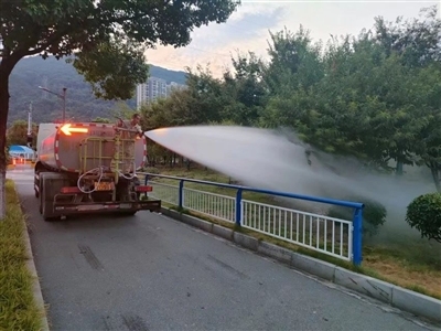 持续高温天气,城区花草树木也饱经“烤”验。连日来,市城管系统全面开展园林绿化抗旱保绿行动,加大园林绿化管理力度,充分利用早晨和夜晚时间,科学浇灌“解渴”,通过及时松土、修剪、除草、搭遮阳网等措施,打响抗旱护绿保卫战。