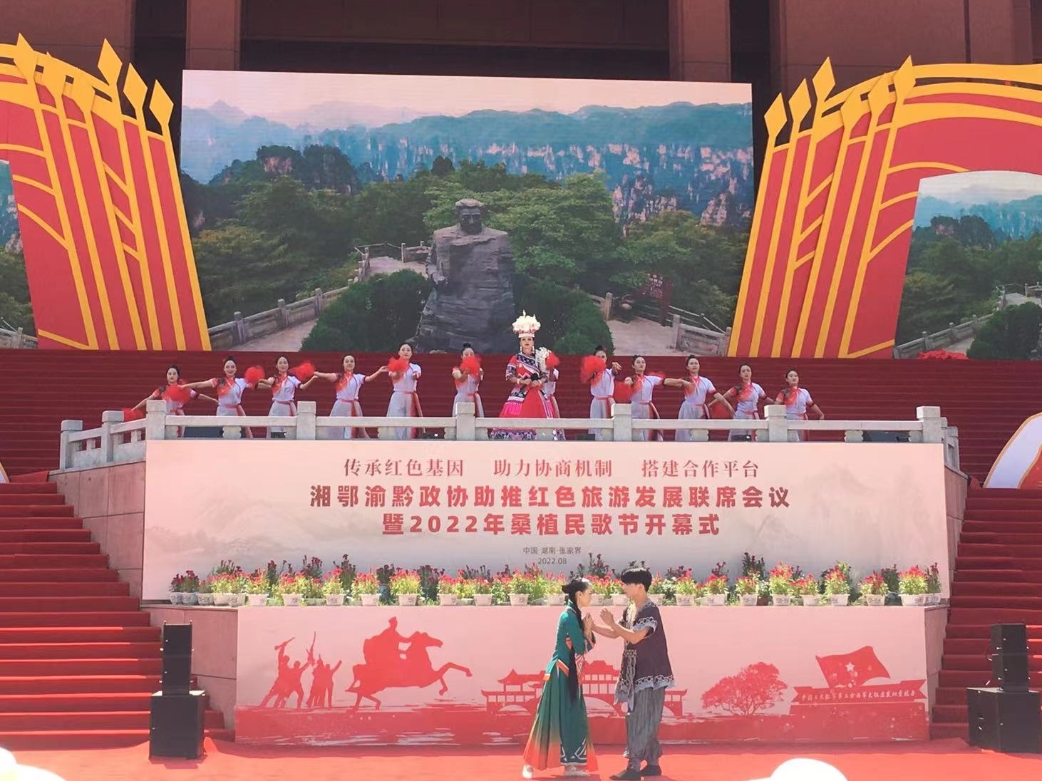 8月17日上午,湘鄂渝黔政协助推红色旅游发展联席会议《桑植共识》发布仪式暨2022年桑植民歌节开幕式在中国工农红军第二方面军长征出发地纪念馆举行。