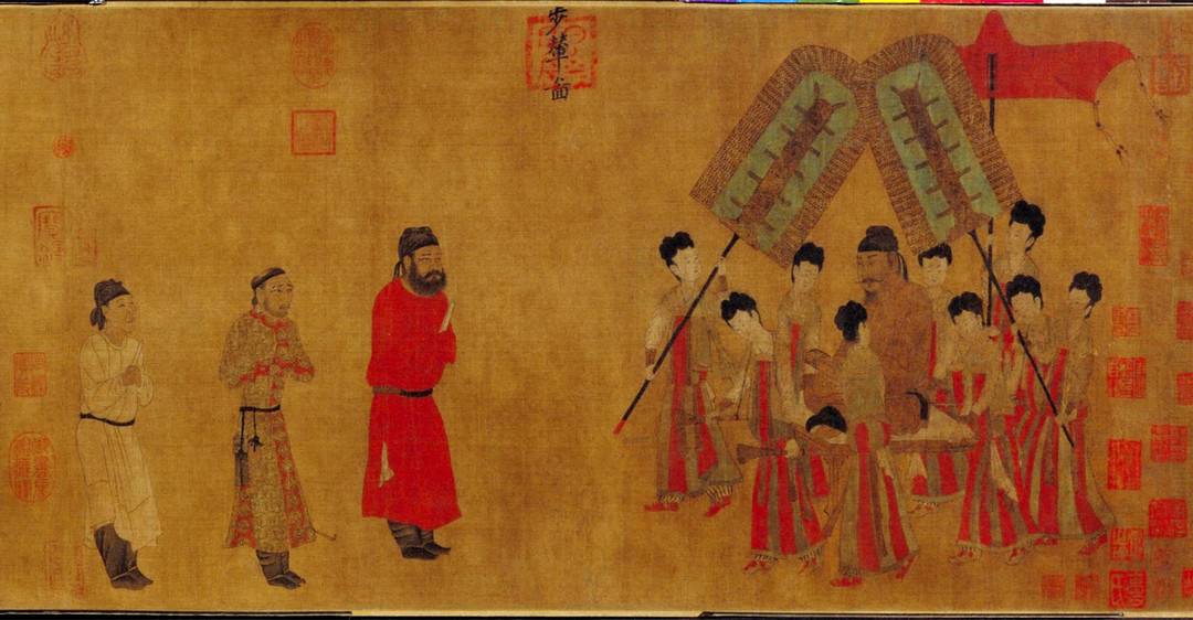 (唐)阎立本《步辇图》(局部)描绘了“万邦来朝”的贞观之治