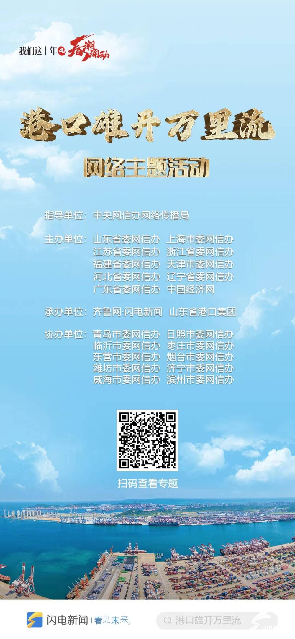 编者按:8月16日,“港口雄开万里流”网络主题活动在山东青岛启动,本次活动由中央网信办网络传播局指导,山东省委网信办、上海市委网信办、江苏省委网信办、浙江省委网信办、福建省委网信办、天津市委网信办、河北省委网信办、辽宁省委网信办、广东省委网信办、中国经济网主办,山东线活动由齐鲁网·闪电新闻、山东省港口集团承办,青岛、日照、临沂、枣庄、东营、烟台、潍坊、济宁、威海、滨州等10市党委网信办协办。