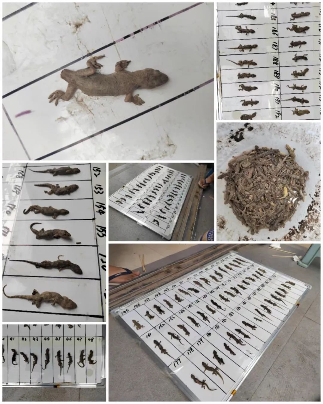 “老乡,干嘛呢?”8月14日23时许,东漳堡派出所在“百日行动”夜巡检查过程中,发现小营村村南街道上有人利用头灯照明、棍杆黏贴的方式,猎捕无蹼壁虎(“三有”动物)。现场查获388只无蹼壁虎及伸缩杆、镊子、老鼠粘、强光头灯等工具。经现场研判,徐某涉嫌非法涉猎,民警遂将其传唤至派出所开展讯问工作。 经讯问,犯罪嫌疑人徐某对自己非法狩猎无蹼壁虎388只的犯罪事实供认不讳。