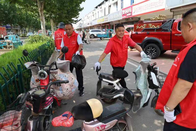 擦亮党徽 身体力行带头干。“大爷,咱这些东西不能摆在家门口,我帮您收拾进去。”活动中,党员干部们身穿红马甲,戴好党徽,亮明身份,走上街头开展卫生清扫工作。他们或认真捡拾烟头纸屑等路面垃圾,或积极铲除牛皮癣广告,或摆放整齐电动车辆,或帮助村民收拾门口店外杂物。虽然头顶烈日炎炎,但是个个奋力争先,拉网式的清理使得镇域路域和人居环境卫生得到了明显的改善,周边环境面貌焕然一新,受到居民群众的一致好评。