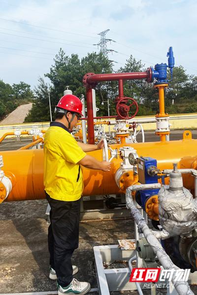 “露天维护、检修设备,就像是在蒸桑拿,日常巡查每隔一个小时就要进行一次,储配站是城市燃气的‘心脏’”,燃气安全开不得玩笑的。”邹旭宏作为津市长燃储配站运行班班长,他每天要完成两项工作:一是将班前会落到实处,带动班组成员不断重复学习场站安全管理制度和各项操作规程。二是做好日常巡查,密切关注上游天然气的进站压力变化,及时调整好出口压力;保证日常降压或加臭工作操作无误,确保安全平稳供气。