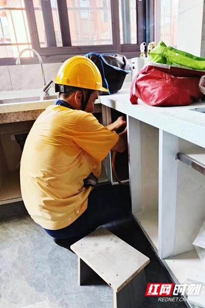 下午2点30分,烈日当空,岳阳新天地1栋居民万先生是苏重武今天预约安检的第12户。他赶到用户家时已汗流浃背。未休息片刻,他套好鞋套,背着十多斤重的工具包走进厨房作业。苏重武窝在灶台下检查燃气设备、管道连接部件进行全面检查,身上早已被汗水反复浸湿,黄色防静电工装已结出白色的“盐渍”。检查发现,万先生家连接灶具的地方还在使用胶管,与用户沟通后同意将胶管改为燃气专用金属波纹管……安检中发现的任何燃气隐患,苏重武都会当场给用户解释说明并维修好,他总说“安全无小事”。
