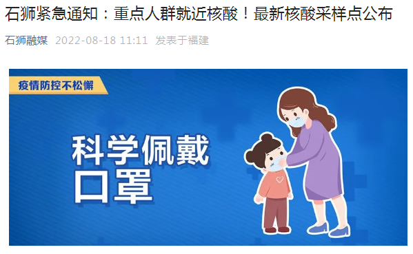 惠安县新型冠状病毒感染的肺炎疫情应急指挥部通告(第52号)为切实保障人民群众生命安全和身体健康,把风险降到最低,惠安县于8月18日增设一批核酸检测点位,服务全县广大居民就近进行核酸检测。现将有关事项通告如下:一、服务对象惠安县域范围内所有24小时内未参加过核酸检测的居民(包括常住人口、暂住人口、临时流动人口、外籍人口等),尤其是7天内有涉疫风险地区旅居史人员,不含集中和居家医学观察人员。二、采样地点全县共设211个采样点,请按照所在村(社区)工作人员的通知指引,分时段有序到达指定地点开展核酸采样;外来商务人员就近参加核酸检测。各镇、村(社区)核酸采样点地址详见附件1。三、采样时间8月18日15:00-19:00(具体以属地镇组织通知时间为准)四、注意事项1.请携带身份证(无身份证者请携带户口簿)等有效身份证明,携带手机、准备好“八闽健康码”到达指定地点参加采样。采样过程中请主动配合、听从工作人员指挥。2.采样期间请做好个人防护,尤其是家长要引导幼儿全程佩戴口罩,保持一米以上距离,避免聚集和相互交谈,自觉维护好现场秩序。采集完后,立即戴好口罩并尽快离开现场。3.全县各机关、企事业单位必须无条件支持,并通知全体干部职工在上述规定时间内参加核酸检测;各出租户房东要履行主体责任,通知、提醒租户参加核酸检测。4.各学校师生员工原则上在居住地就近参加核酸检测,儿童须在家长陪同下进行检测。5.在等待核酸检测结果期间,请自觉做到非必要不外出、不聚集、不聚会,最大限度减少人员流动。核酸检测,人人有责!为了大家生活更便利、更美好,请全县居民相互转告,注意做好防范,积极参与本轮核酸检测!附件:1.惠安县各镇(园区)核酸检测采样点2.惠安县各镇(园区)联系咨询电话惠安县新型冠状病毒感染的肺炎疫情应急指挥部2022年8月18日附件1:附件2:惠安县各镇(园区)管委会联系、咨询电话螺城镇 87382686 87366901螺阳镇 87332424黄塘镇 87289024 87288110紫山镇 87292233崇武镇 87681326山霞镇 87601508涂寨镇 87238904东岭镇 87881342东桥镇 87852001净峰镇 87801209小岞镇 87839017辋川镇 87260007 87260024泉惠石化工业园区管委会 87260666城南工业园区管委会 87322866惠东工业园区管委会 87878568