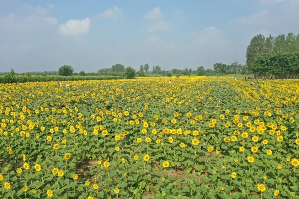 昔日,一望无际竞相绽放的金色花海向日葵,如今被油亮有光泽、颗粒饱满的瓜子粒压弯了腰。花期过后,向日葵化身农作物,转换为另一种身份继续闪闪发光。