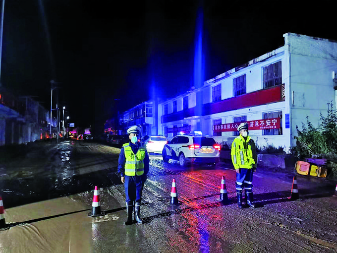大通公安民警开展抢险救援,维护交通治安秩序。(青海省公安厅供图)