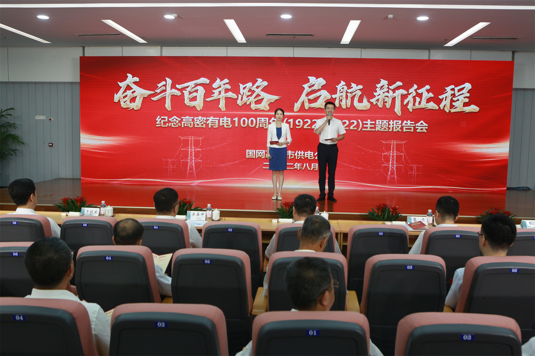 百年栉风沐雨,百年初心如磐。8月19日,国网高密市供电公司举办“奋斗百年路·启航新征程”纪念高密有电100周年主题报告会。该公司领导班子,离退休老领导、老同志代表,五级职员,全体中层干部,六级、七级职员,专家人才和部分员工代表在现场参加,其余员工通过视频会议在线收听收看。