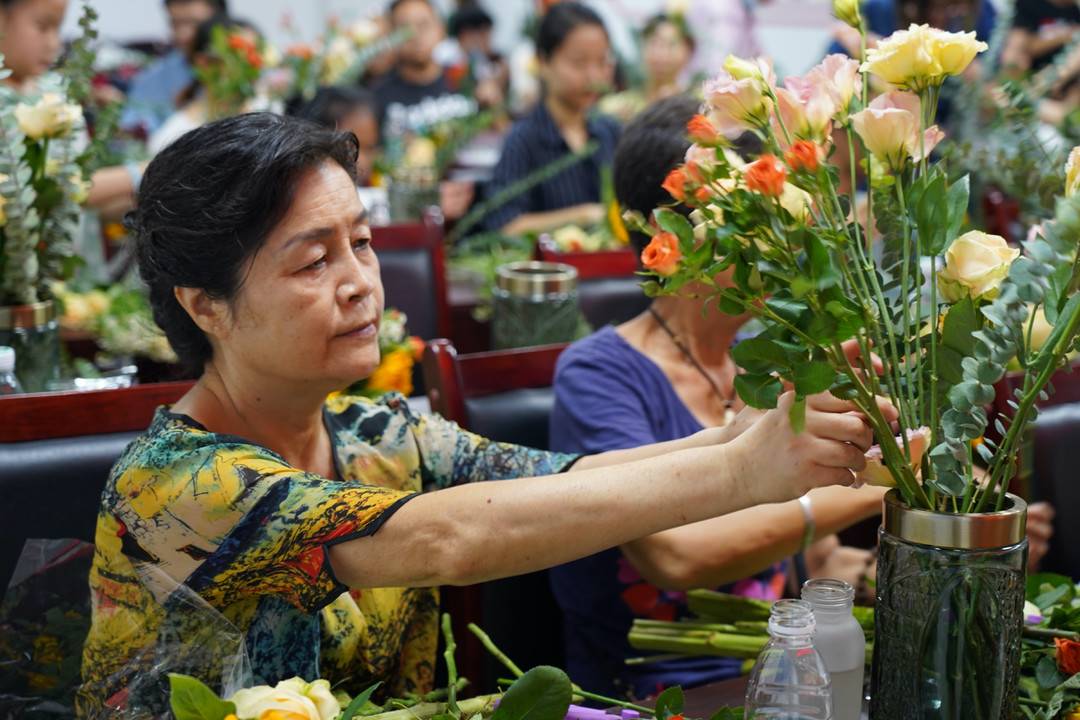 8月19日,成都市武侯区万寿桥社区,跟着大师学花艺的李阿姨笑得合不拢嘴。这是“绿色睦邻·共建美好”公益活动的现场,来自社区的居民在成都工匠、国家二级插花技师叶青的带领下,近距离体验了一次鲜花如何变得艺术。
