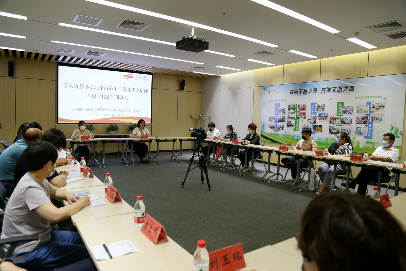 据介绍,此次基层党代表宣讲是丰台区学习宣传落实北京市第十三次党代会精神系列宣讲活动之一,通过区领导带头宣讲、组建区委宣讲团开展集中宣讲、组织参加党代会的部分基层党代表面向基层党员干部群众宣讲等多个层次,采取报告会、座谈会、讲座、调研等多种方式,全面深入学习落实市第十三次党代会精神,通过对象化、分众化、互动化的宣讲,充分展示新时代首都发展新成就新气象,全面反映丰台人民“妙笔生花看丰台,拼搏奋斗见行动”的坚定信心,助力推动全区党员干部以实际行动迎接党的二十大胜利召开。
