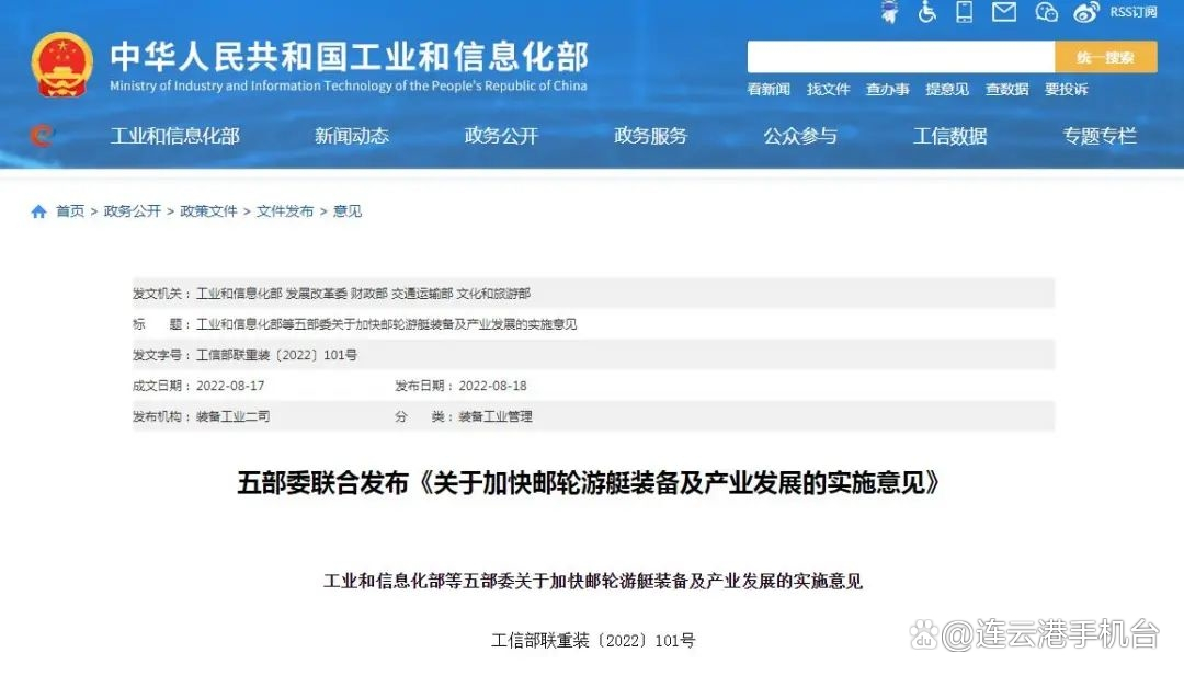 8月18日,工信部等五部委发布《关于加快邮轮游艇装备及产业发展的实施意见》。