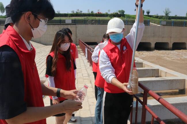 德州学院“清水绿滩一叶舟”实践团在齐河潘庄对黄河水进行采样