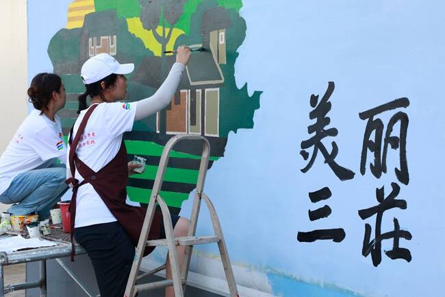 山东艺术学院学子到东港区三庄镇开展“青绘东港”农村公益墙绘志愿服务活动